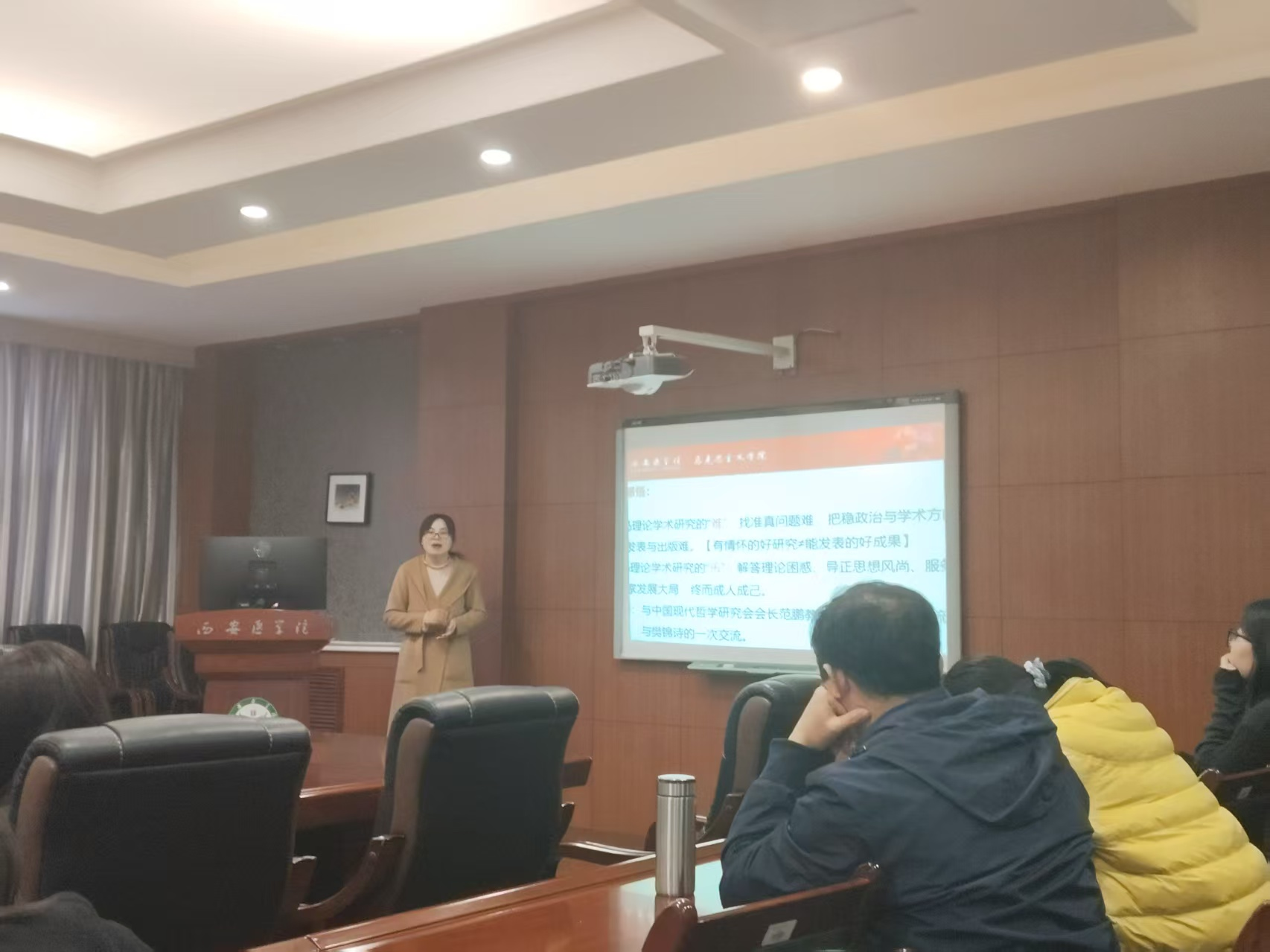 杨小丽博士以《马克思主义理论专业教师科研之我见》为题,围绕高层次科研项目申报选题、论证技巧、撰写方法等内容展开讲解,她深度剖析项目选题命名、创新点提炼、研究方法适配等关键问题,重点强调了项目申报流程和材料规范撰写。杏贝男博士结合自身学习工作研究实践,以《做有情怀的马克思主义理论研究者》为题,梳理个人研究经历和学术成果,详细分享研究方向的形成经验,特别强调做好科研工作要以兴趣为出发点找准问题、刻苦钻研。