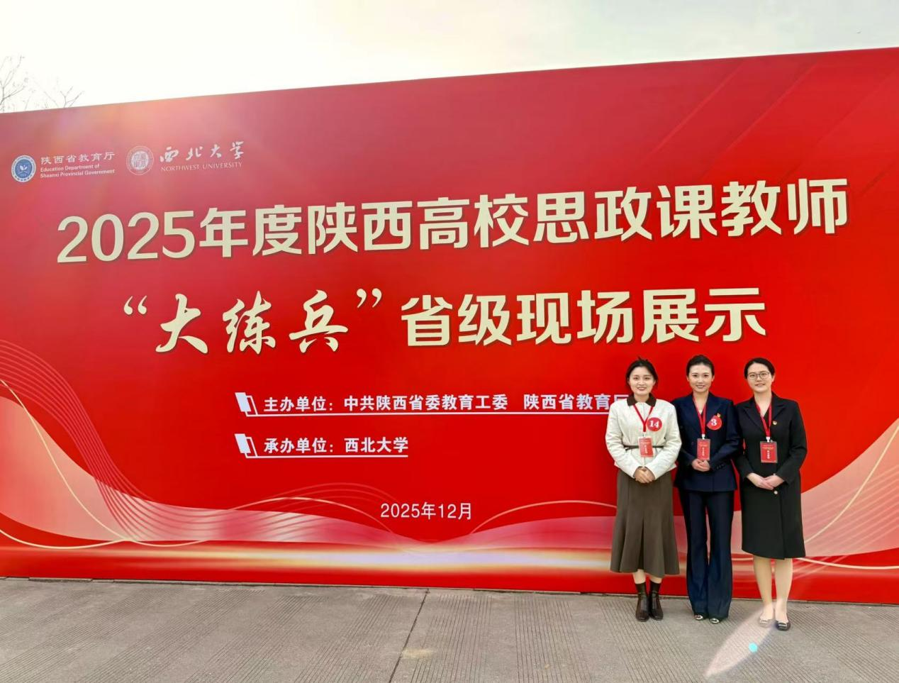 1月4日,委厅公布2025年度陕西高校思政课教师大练兵展示结果。在现场展示中,我校三位青年教师敢打敢拼、奋勇争先,凭借扎实功底脱颖而出,斩获三项特等奖。周雨柔老师获《思想道德与法治》赛道特等奖,何亚琪老师获《中国近现代史纲要》赛道特等奖,杨子昱老师获《形势与政策》赛道特等奖。此次展示不仅荣获我校参加该项赛事历史最好成绩,更以亮眼表现位居全省高校前列,充分展示了学校思政课教师的良好精神风貌,彰显了思政课建设的长足进步。